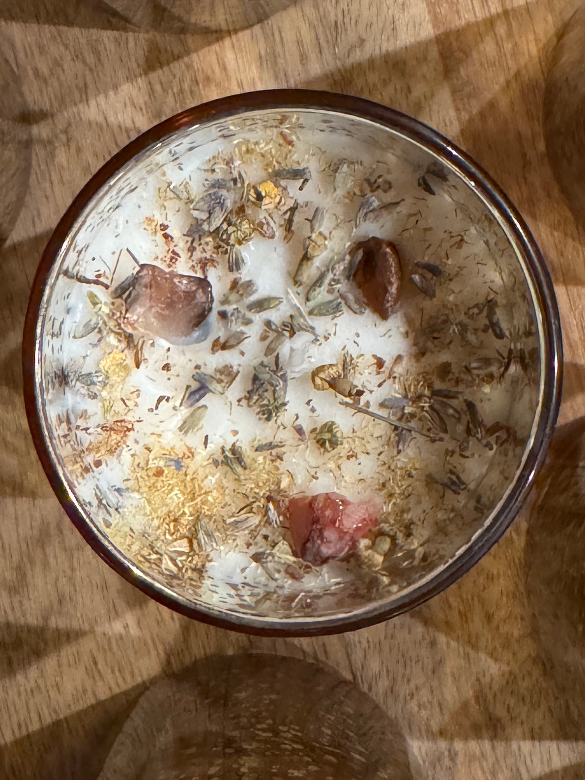 Rooted in alchemy, these candles are crafted with a purposeful blend of herbs, essential oils, and charged crystals—each chosen for its unique energetic properties. Every element works in harmony to support transformation, protection, abundance, prosperity, health, purification, or love, creating a candle that is more than just wax and wick—it is a conduit for manifestation. Rather than overwhelming the senses with strong fragrance, these candles are designed to gently support your energetic space with natural aroma and sacred intention. Because intention is at the heart of my process, I choose natural botanicals over synthetic, endocrine-disrupting fragrances, allowing the pure energy of the ingredients to shine.